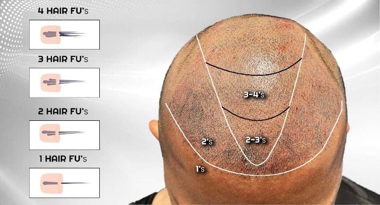 One-hair grafts should be employed in the anterior aspect of the TZ with a transition towards 2-hair grafts in the posterior aspect. This promises you a natural, softer, aesthetic look.