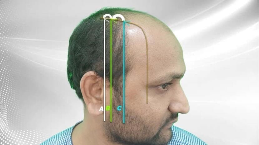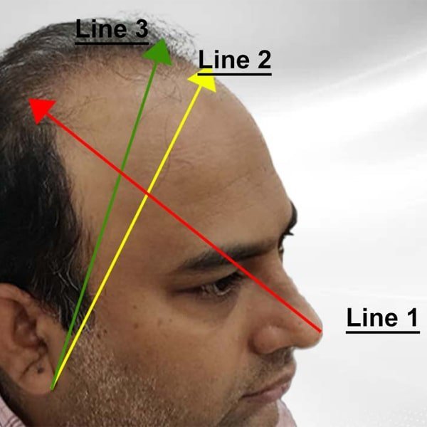 The borders of the hairline comprise of 2 lines: one is the frontal hairline and the other is the temporal hairline and they converge at the FTA. Both recede simultaneously as they progress towards the higher grades of baldness. The FTA stays on a line that’s drawn perpendicular from the lateral epicanthi of the eyes even as the hair loss progresses. The converging point between the temporal hairline and the temporal hairline and the FTA is determined on the basis of the patient’s age, current balding status, potential future hair loss and the donor supply. In case, future hair loss is not considered, there is a huge chance of there being a gap between the loss of existing hair and the transplanted hair.