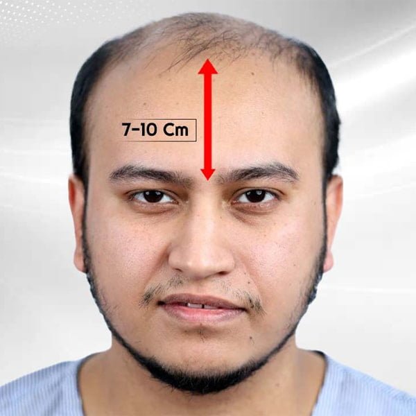 Conventionally, the distance from middle of eyebrows to the tip of hairline is 7 to 10 cms.