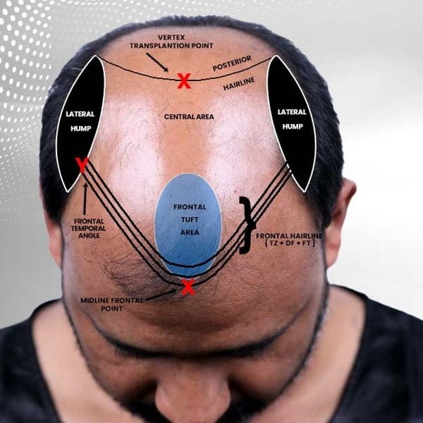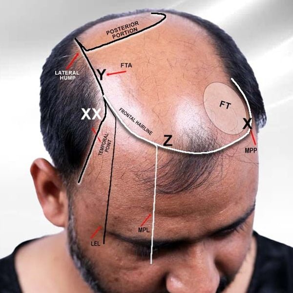 In grade 7 baldness already patient has lost lateral humps. To draw a hairline with above parameters will not give definite result as it will create a gap in donor area and recipient area.