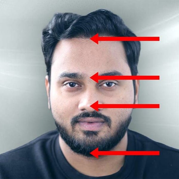 By and large, most good-looking faces have a distinct proportion. The face is divided in to 3 sections - from hairline to the middle of the eyebrows, middle of eyebrows to the tip of nose and the tip of the nose to the bottom of chin.