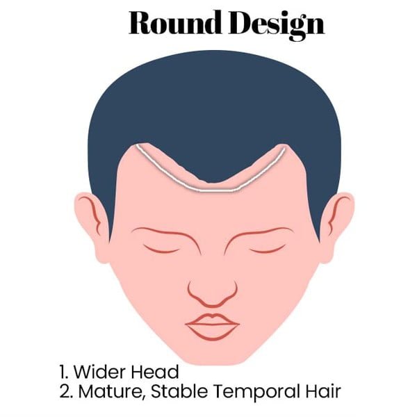 The Round Design is perfect for a wide head that needs a hairline that goes well with the wide arc of the frontal aspect of the scalp.