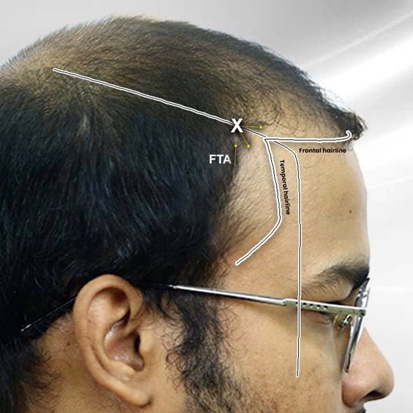 The FTA is formed at the convergence of the frontal and the temporal hairlines. The frontal hairline forms the superior arm, whilst the temporal line forms the inferior arm. Locating and crafting the FTA is an exceedingly important and critical task in hairline designing. These are the factors that determine and establish the situation of the FTA: